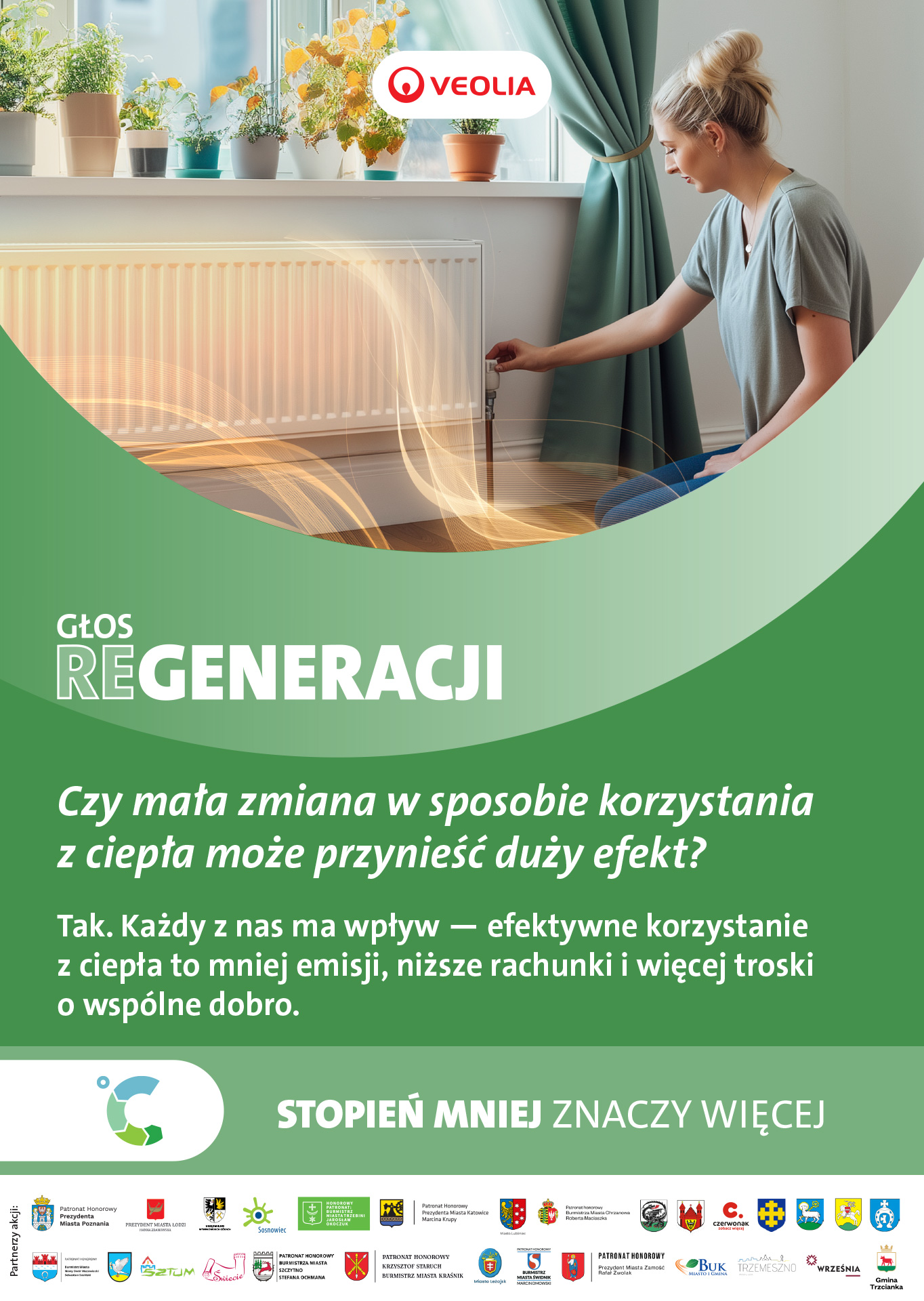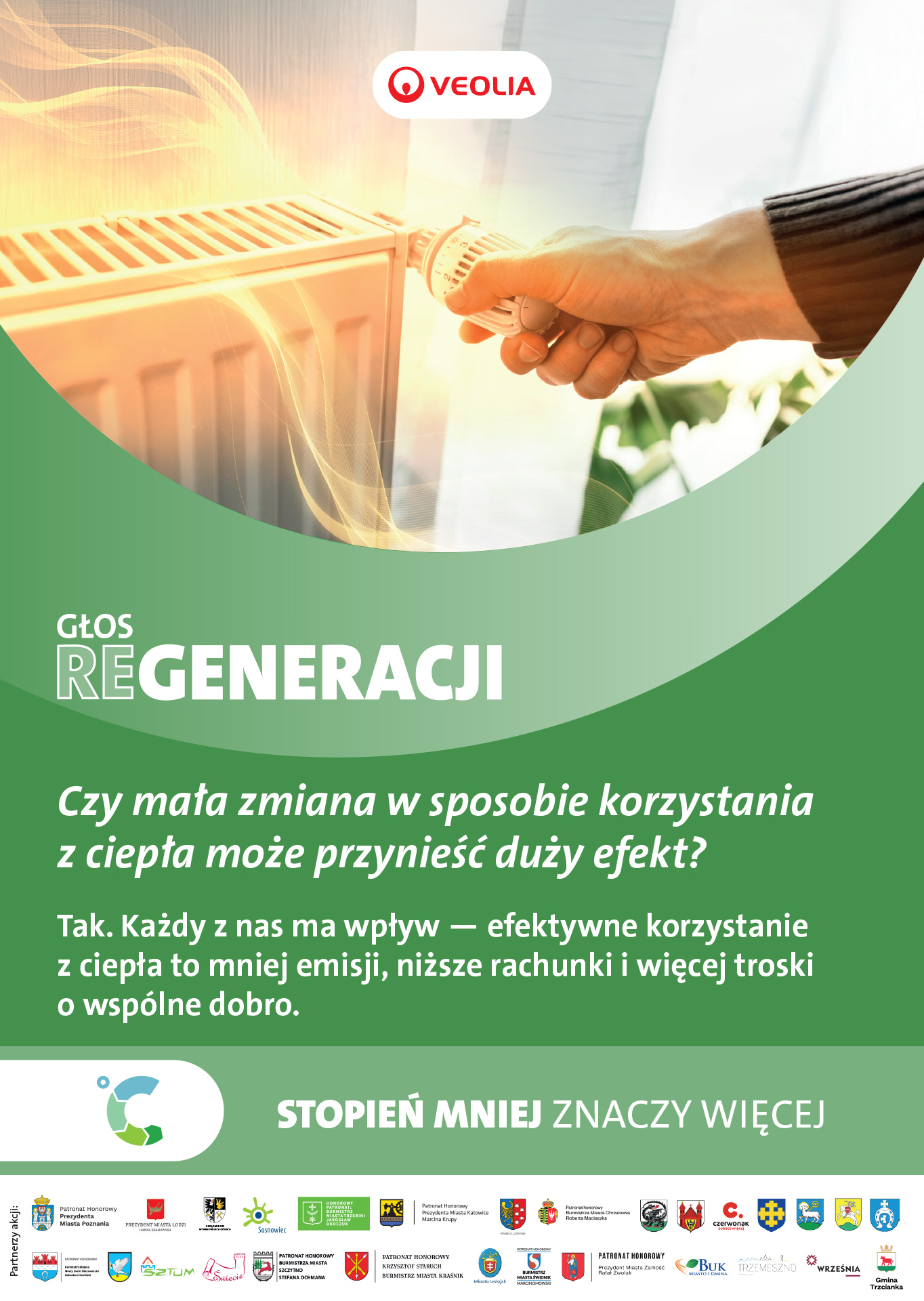 Jako jeden z największych dostawców energii na świecie Veolia wie, jak ważną rolę dla zdrowia i środowiska odgrywa znajomość korzyści wynikających ze świadomego korzystania z ciepła. Właśnie dlatego w 2023 roku, z inicjatywy firmy, powstała kampania społeczna „Stopień mniej znaczy więcej”. Zawarte w niej treści, porady i praktyczne przykłady pozwalają kształtować codzienne nawyki tysięcy osób.